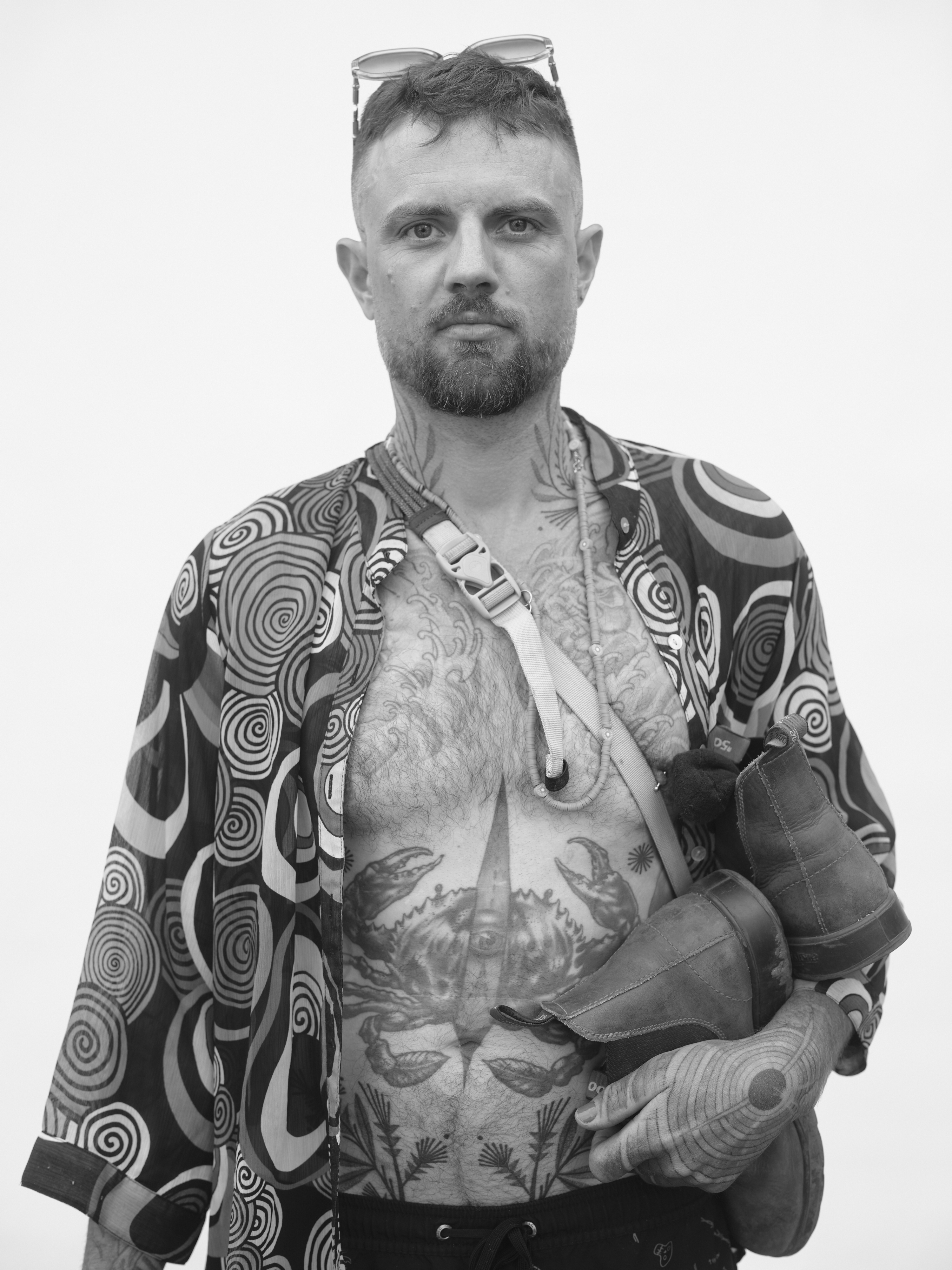 IIn The Australian Doof bears witness to gatherings that take place beyond the limits of polite society. Photographed against a plain backdrop and removed from their environment, individuals are seen without the bush, the music, or the crowd.
